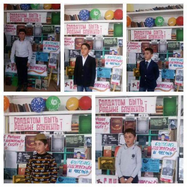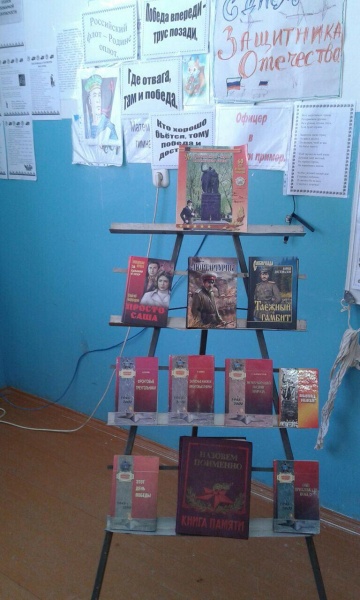 Организована обширная иллюстрированная книжная выставка газет, журналов и цитат - «Солдатом быть - Родине служить» посвященная народу - победителю. Составлен библиографический обзор книг и журналов.