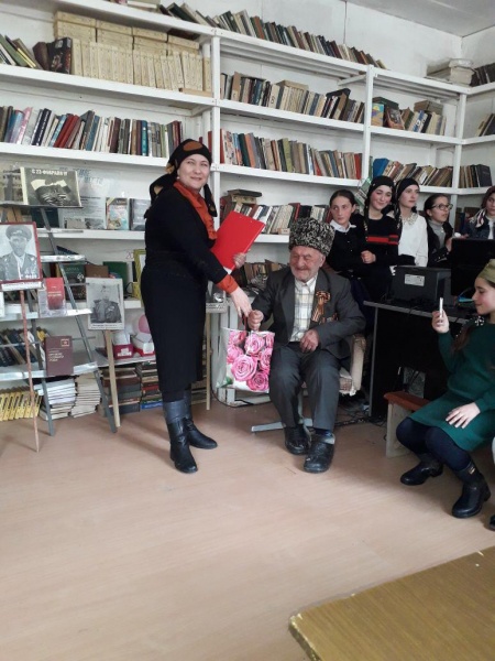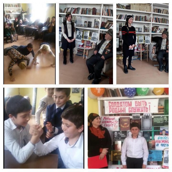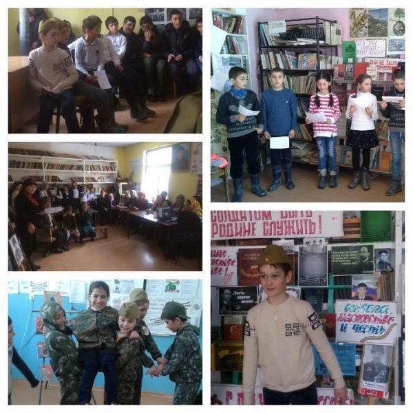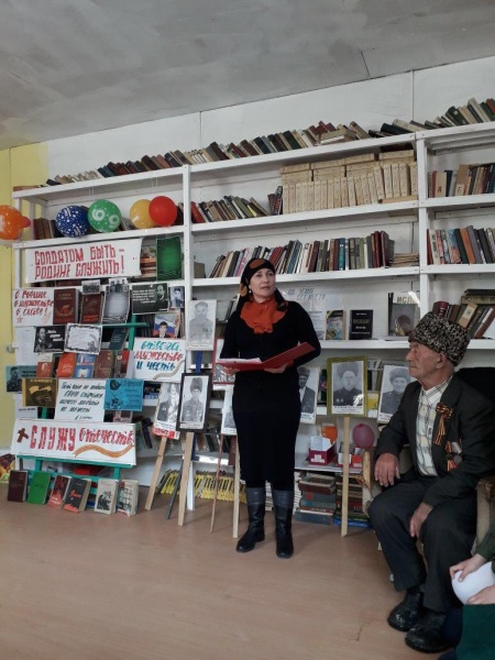 Были приглашены самые активные наши читатели библиотек, родители чтецов, ученики 10 класс со своим классным руководителем. Также принимала участие учительница по истории БСОШ им. Героя России Абдухалика Курбанова Чулухиева Х.Г. Она поздравила с праздником ветерана, присутствующих ребят, будущих солдат, офицеров. Далее слово для выступления дали единственному ветерану локальных войн Гасану Нажмудинову для поздравления с днем Защитника Отечества. Он рассказал о событиях, где служил и участвовал в бою.