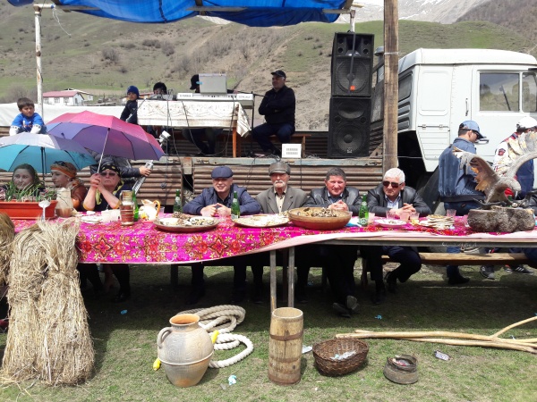 Организаторы праздника, одетые в национальные костюмы, подготовили для гостей различные угощения: хинкал, кашу из пшеницы, кукурузы и черного гороха, различные виды чуду, хлеб из кукурузной муки и другие блюда.