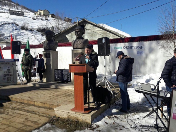 Митинг, посвященный Дню защитника Отечества и Памяти Героев открыла ведущая праздника Наизат Малламагомедовна. Поздравив присутствующих гостей и участников митинга она предоставила слово зам. главы М. Мусаеву, который сказал: «Сегодня мы отмечаем праздник День защитника Отечества. Это день воинской славы России, которую российские войска снискали себе на полях сражений. Изначально в этом дне заложен высокий смысл- любить и защищать свою Родину.