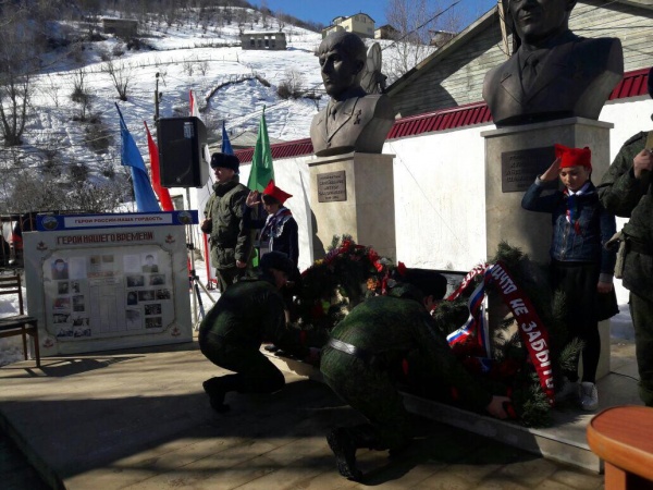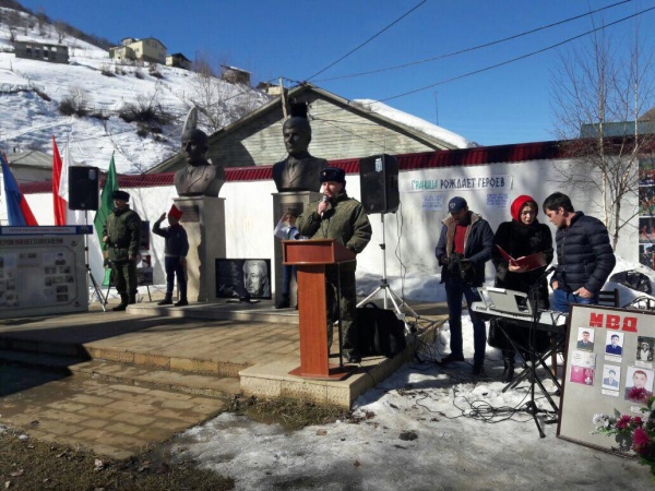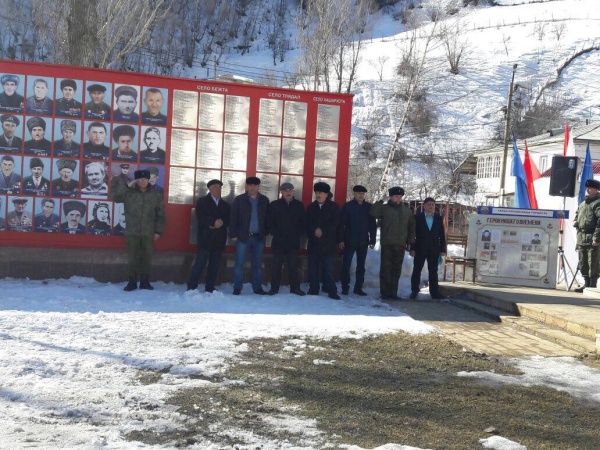В честь Дня защитника Отечества, а также Памяти Героев России А. Курбанова и М. Сулейманова, 28 февраля в МО «Бежтинский участок» состоялся торжественный митинг. Центром праздника стала площадка у Аллеи Славы и памятников Героев России А. Курбанова и М. Сулейманова, где Централизованной библиотечной системой была развернута выставка «Граница- рождает героев».